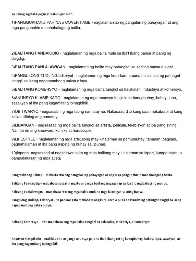 Ga Bahagi Ng Pahayagan At Kahulugan Nito Pdf